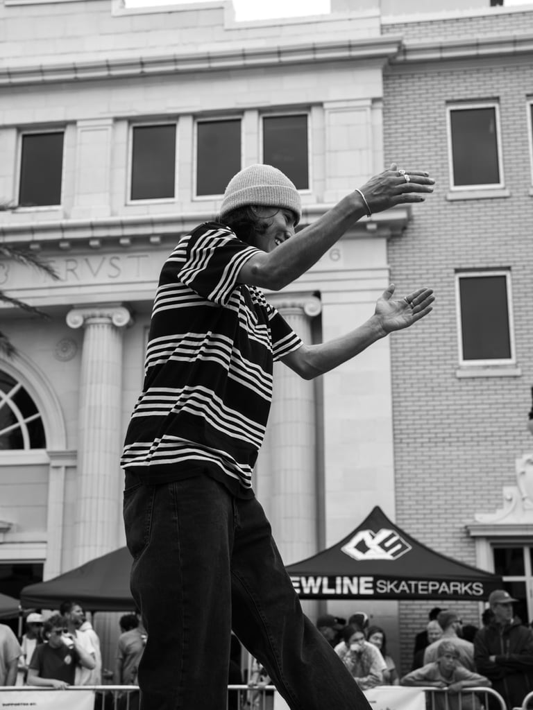 Something about a blurry skater in front of a focused-in crowd… Chef’s kiss.